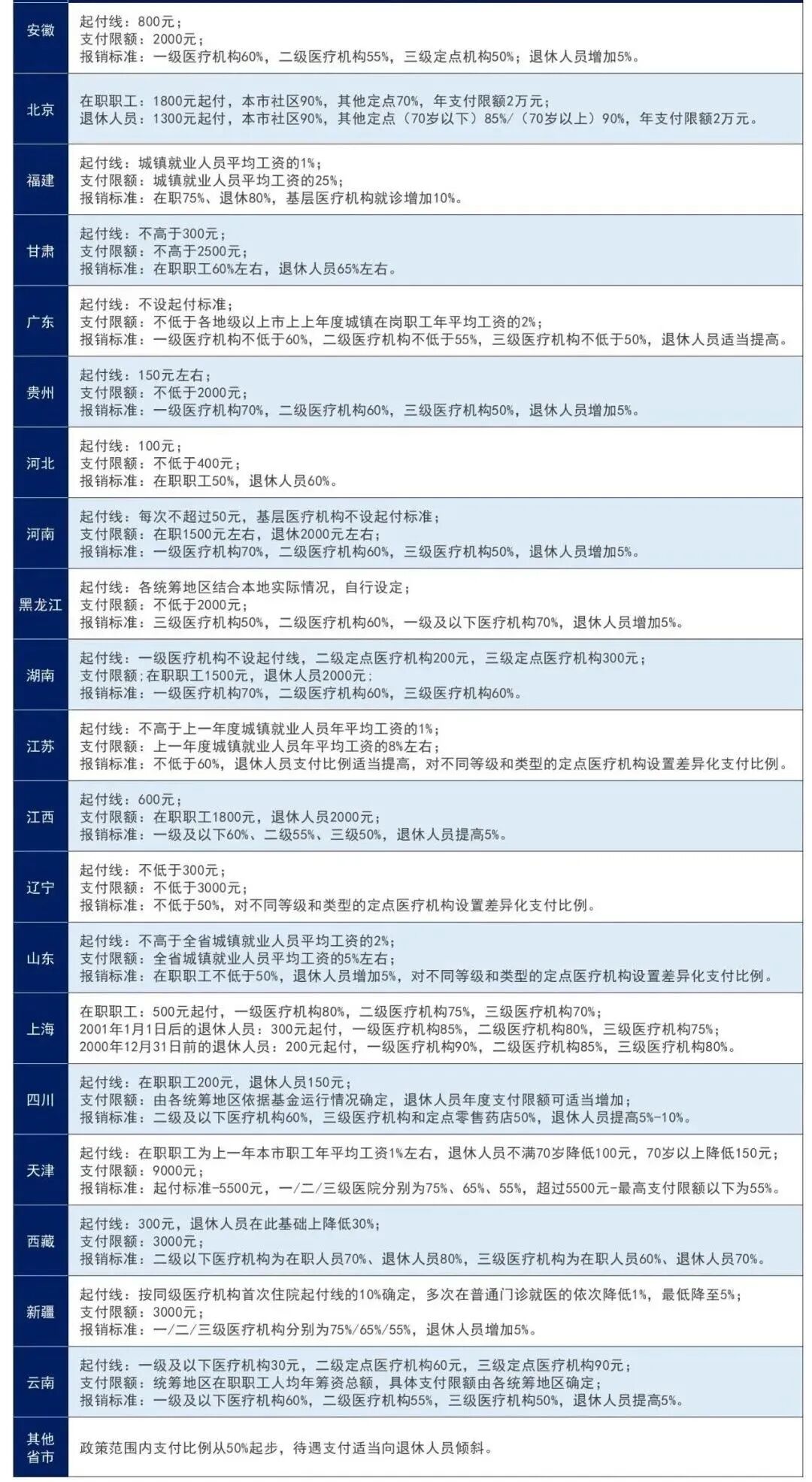 为了更好解决职工医保参保人员门诊保障问题,切实减轻其医疗费用负担,2021年4月,国务院办公厅印发了《关于建立健全职工基本医疗保险门诊共济保障机制的指导意见》。 今年4月,该文件出台已满一年,截至目前,全国31个省、自治区、直辖市和新疆生产建设兵团均已发文,建立健全当地职工医保门诊共济保障机制。 具体落实情况是什么样的呢?让我们一起来看看~ 01 单位缴费部分不再计入个人账户 医保余额减少 医保账户分为两部分: 统筹账户和个人账户。改革之前,单位缴纳的医保,一部分纳入统筹基金,一部分存入职工的个人医保账户,但随着各地医疗门诊共济制度的执行,单位医保缴费全部纳入统筹基金。 比例因地区不同,而有一定差别,仅做参考。 现目前,各地在职职工个人账户比例调整的部分基本与国家方案保持一致。 在职职工个人账户由个人缴纳的基本医疗保险费计入,计入标准原则上控制在本人参保缴费基数的2%,单位缴纳的基本医疗保险费全部计入统筹基金。 总的来说,各地职工医保门诊共济政策在落地过程中均以中央整体规划为参照,结合自身实际情况平稳推进政策落地实施。 虽然个人医保账户的钱是变少了,但是个人医保账户的用途变广了,保障能力也更强了。 随着各地医疗门诊共济制度的落实,北京、广东、青海等省市明确参加职工医保的子女们个人账户可以给自己的父母使用,可以给子女使用,实行家庭范围内的共济。 但是需要注意的是个人医保不能给家里人看病报销的。 02 门诊费用可报销 部分地区不设门诊报销起付钱 医保门诊共济简单来说就是门诊的费用,也可以用医保报销。 医保门诊共济之后,将普通门诊纳入医保报销范围,报销额度至少50%。 根据各省市落地执行的文件,报销比例也有所不同: 大部分地区统筹支付比例从50%起步,如河北、山西、辽宁、吉林、黑龙江、海南、广东、四川、云南等; 支付比例从60%起步的,如江苏、浙江、湖南、西藏等; 支付比例从70%起步的,如北京、上海; 支付比例从75%起步的,如福建。 其次,起付标准的不同,大体分为三类: 一类是以一个自然年度内起付标准累计超过指定金额,如江西省规定,一个自然年度内,普通门诊统筹的起付线为600元; 一类是自然年度内按定点医疗机构级别设置起付标准,如云南省规定,自然年度内参保人员每次普通门诊就诊,政策范围内费用统筹基金起付标准:一级及以下定点医疗机构(含村卫生室、社区卫生服务站等)30元,二级定点医疗机构60元,三级定点医疗机构90元。 部分省份普通门诊待遇不设起付标准,如青海省。 除了报销比例与起付线标准,各地也明确了支持分级诊疗制度。 按定点医疗机构级别设置起付标准和差别化支付比例。以海南省为例:一级及以下定点医疗机构,统筹基金支付比例为70%;二级定点医疗机构统筹基金支付比例为60%;三级定点医疗机构统筹基金支付比例为50%。 03 全国各地普通门诊 报销待遇一览 其实从上文中可以看到,普通门诊可报销是本次改革的重点,现已将各个省市的普通门诊报销政策整理出来了: 那门诊报销怎么能多报一点呢? 1、去定点门诊医院就诊 跟住院一样,想要报销门诊费用,就得去定点门诊就医,只有在定点医院产生的门诊费用才可以用医保报销。 2、小病尽量去等级低的医院 因为很多人一生病就往大医院跑,挤占了大医院的医疗资源,所以为减少此类现象,医保政策也往小医院有所倾斜。 小医院的医保待遇往往比大医院要好不少,不仅起付线低,而且报销比例也相对较高。 比如湖南,一级医院不设起付线,报销比例70%,三级医院起付线300元,报销比例60%。 我们简单举个例子来算一算: 假设某次门诊就医,医保范围内花费1000元, 那在社区医院看病的话,可以报销1000*70%=700元, 而在三甲医院看病的话,只能报销(1000-300)*60%=420元, 算下来,同样的就诊费用,三甲医院要比社区医院多花近300块钱。 所以,如果只是小病小痛,尽量去等级较低的医院就诊,可以报销得更多! 3、做好特殊门诊待遇认定 特殊门诊主要为慢性病患者和大病患者提供诊疗服务。它们都有个共性,那就是需要长期到特殊门诊开药或治疗,开销不小。 所以医保的特殊门诊报销待遇就非常实用了,可以帮助患者减轻费用负担! 想要享受此待遇,切记先做好特殊门诊待遇认定,办理方式可选择线上和线下。 线下:带上身份证、社保卡、病历或检查资料去到定点医院的门特窗口,填写《门诊特定病种待遇认定申请表》即可办理完成。 线上:一般在当地政务网上就可以办理。 (文章来源51社保网)