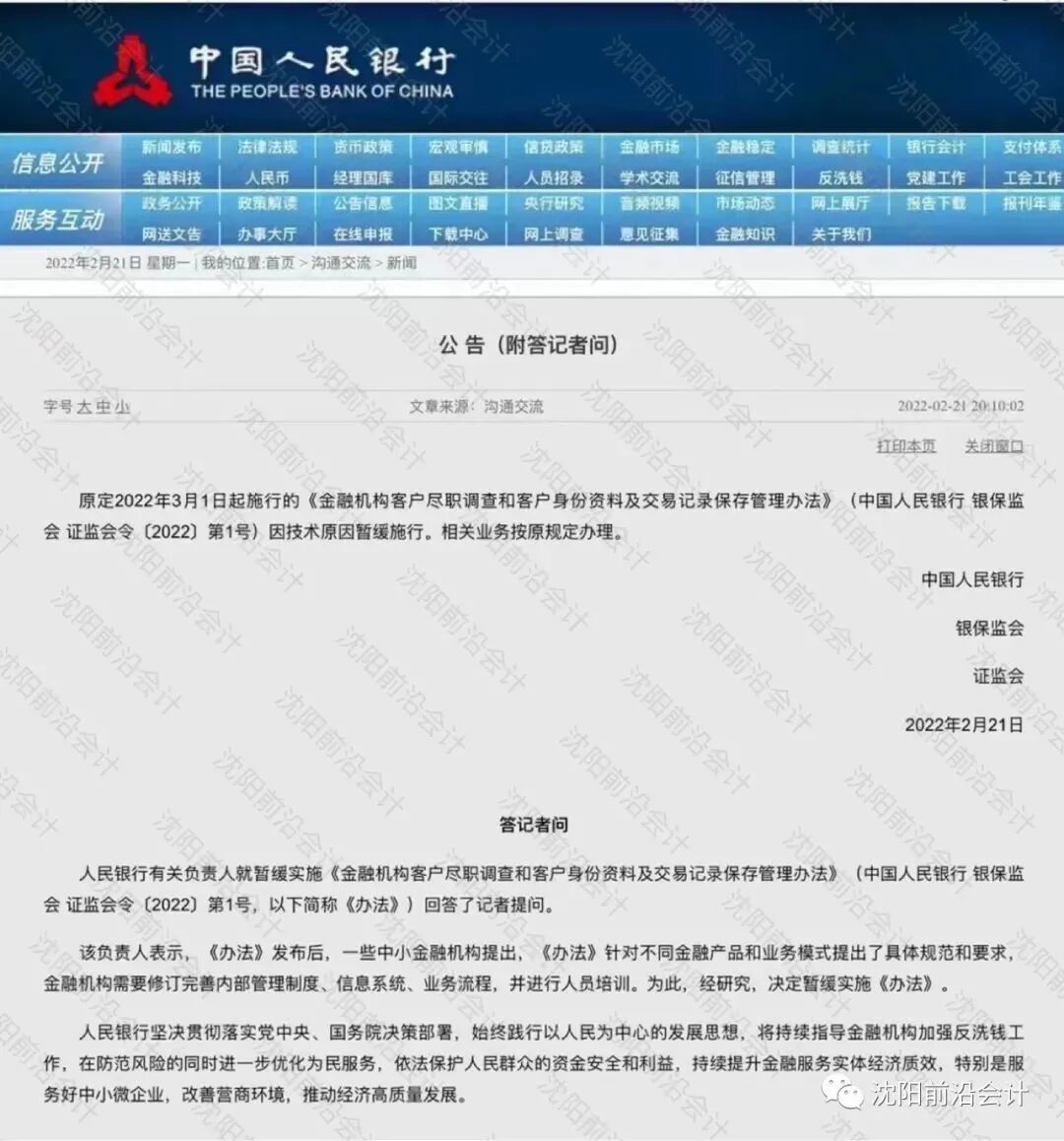 人民银行有关负责人就暂缓实施《金融机构客户尽职调查和客户身份资料及交易记录保存管理办法》(中国人民银行 银保监会 证监会令〔2022〕第1号,以下简称《办法》)回答了记者提问。